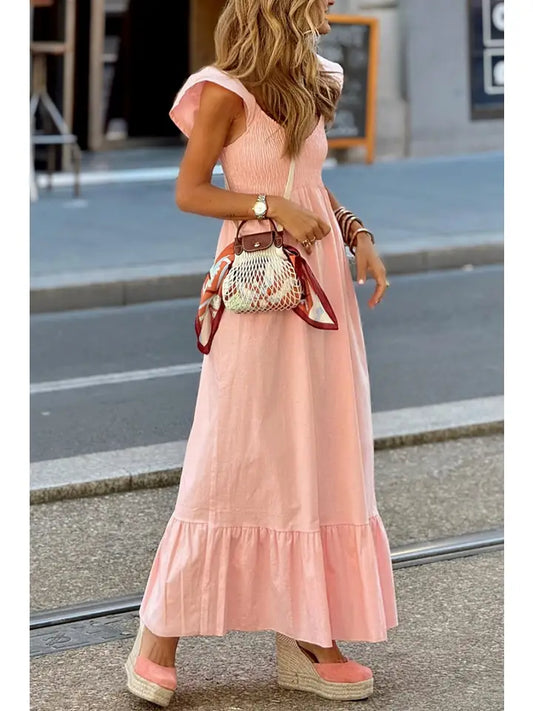 V-NECK FLUTTER SLEEVE MAXI DRESS