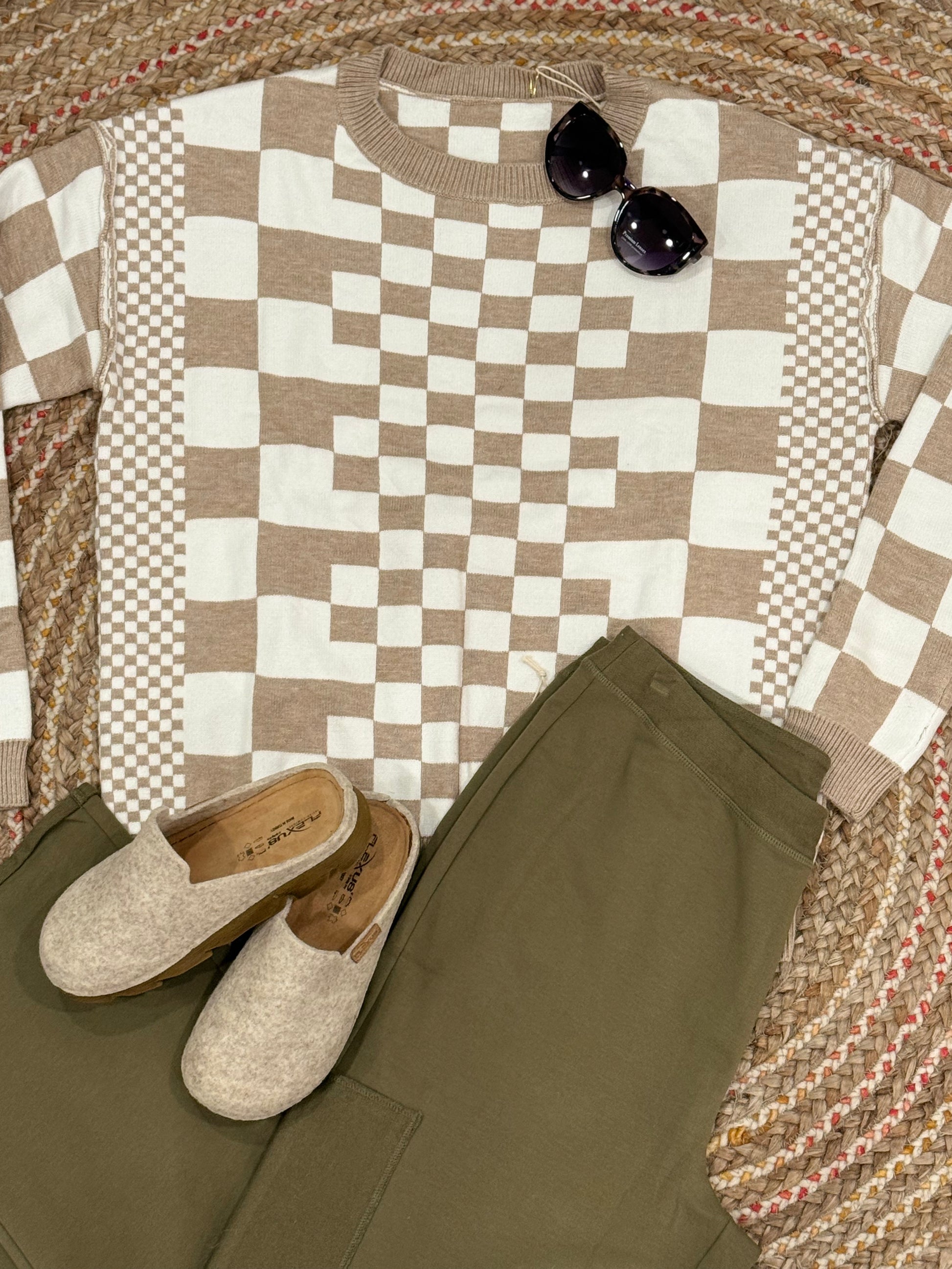 The two-tone checkered print gives a bold and eye-catching presence. The drop-shoulder design adds a relaxed and modern silhouette. The soft and cozy material is perfect for chilly days, offering warmth without bulk. Style with denim or tailored pants for a stylish ensemble.