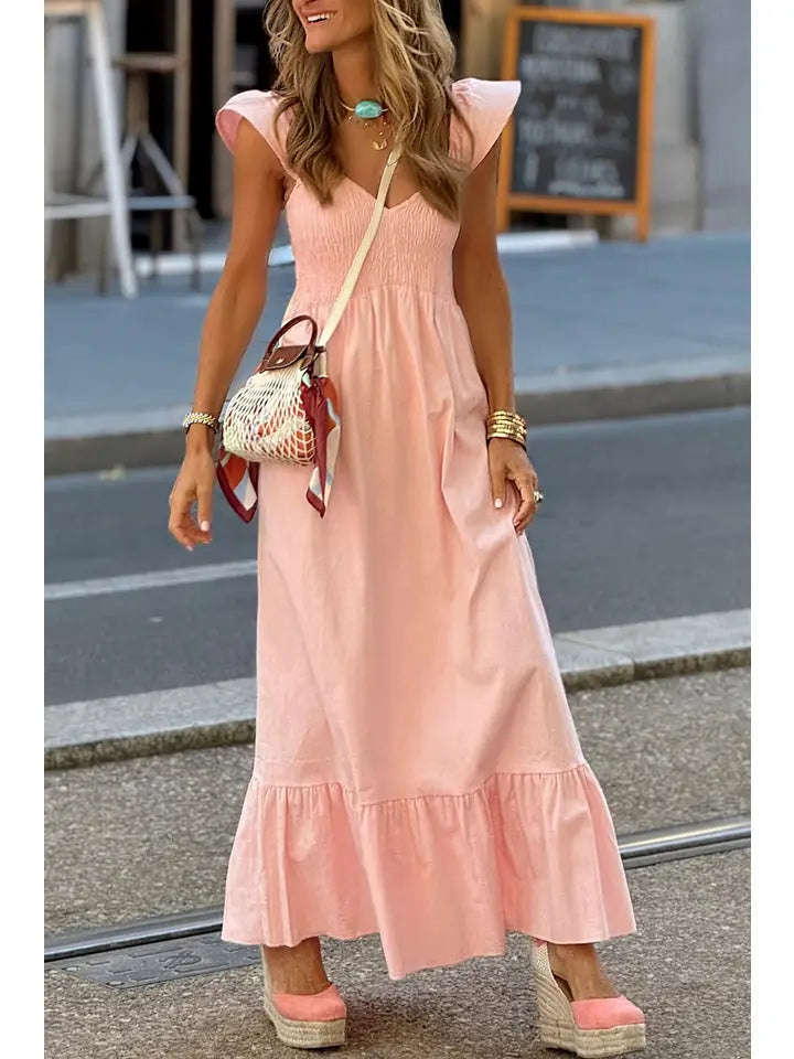 V-NECK FLUTTER SLEEVE MAXI DRESS